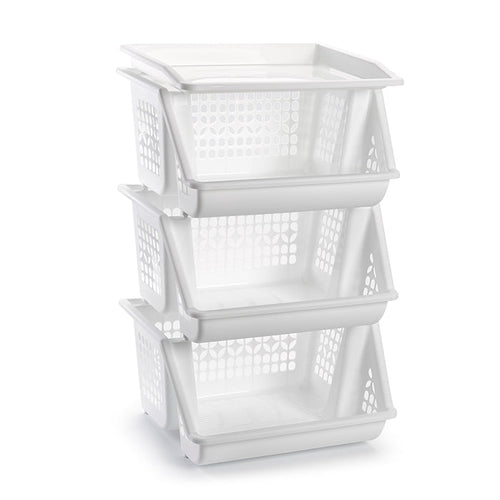 Plastic Forte Stackable 3-Tier Vegetable Rack & Tray, White