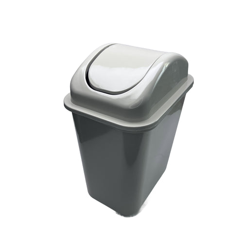 Gab Plastic Waste Bin with Swinging Lid - 15 Liters, Silver