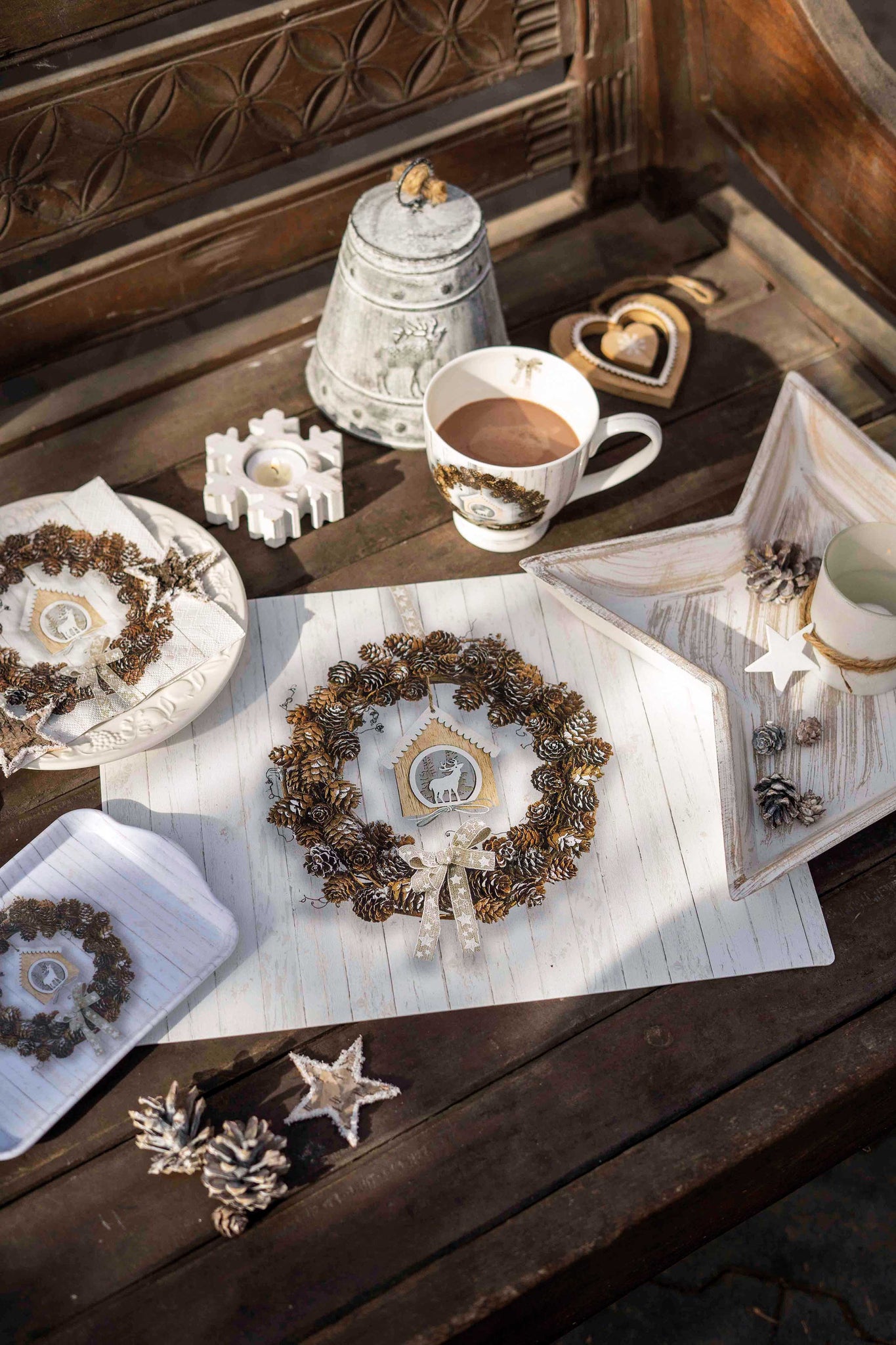 This decorated Ambiente serving tray is a beautiful addition to your daily coffee and team breaks. The shape of the tray is simple and strong with slightly raised edges. The high quality melamine doesn't just give it a luxurious look, but also makes it sturdy.