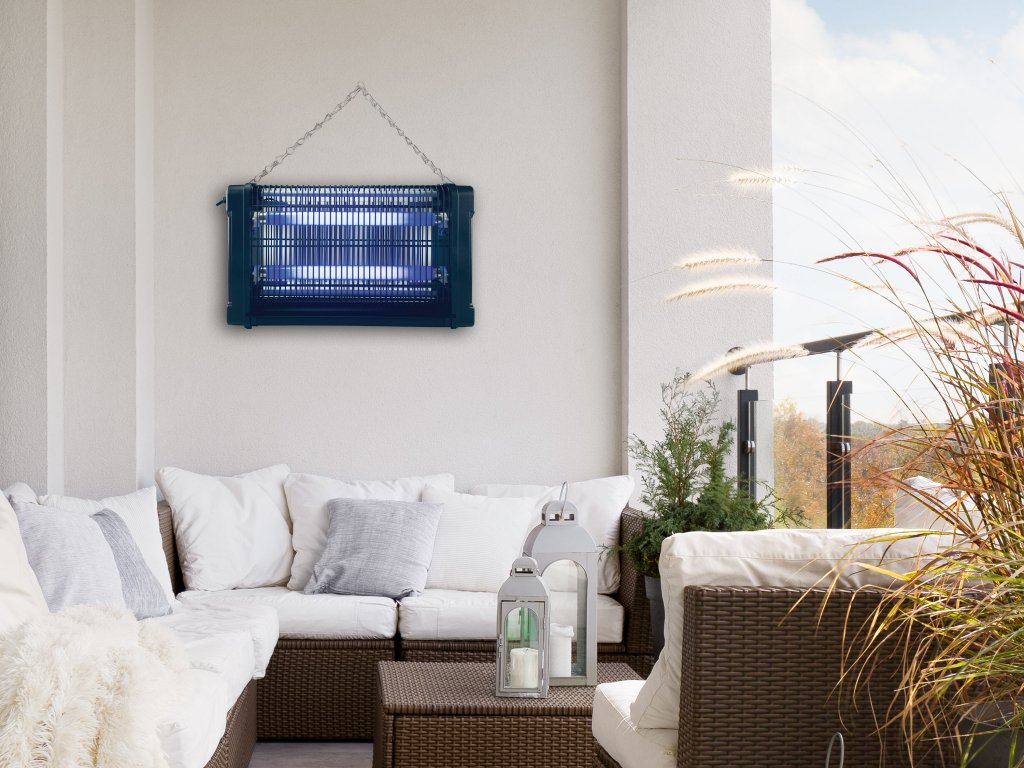 The two 10 W UV-A light tubes each and the open top grid help to increase the attractiveness, to eliminate mosquitoes and other flying insects.