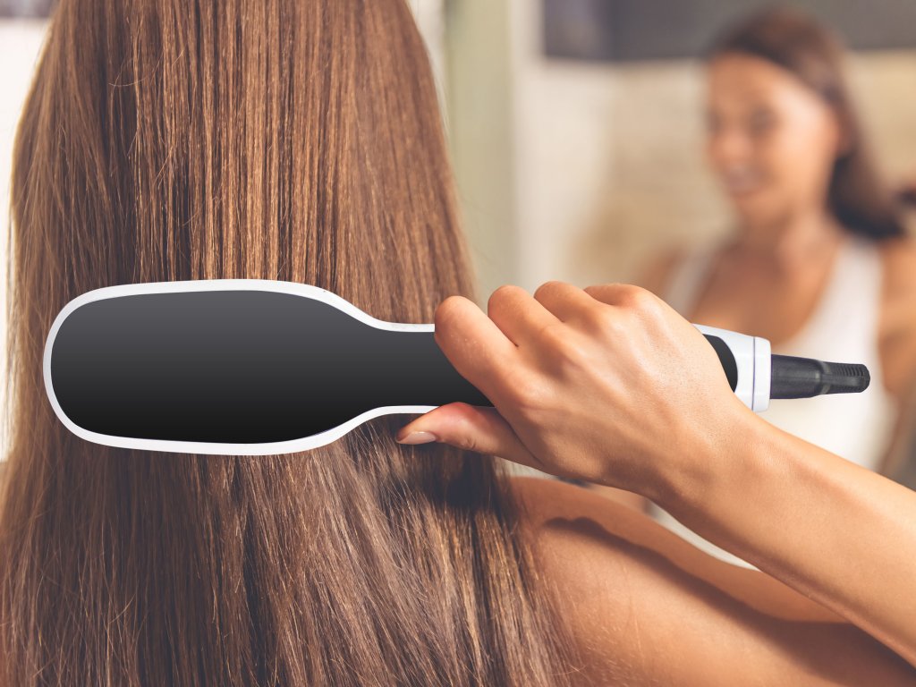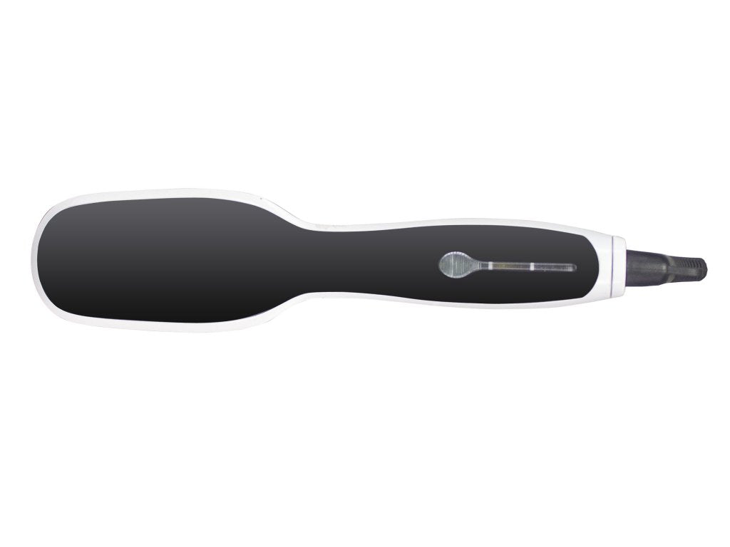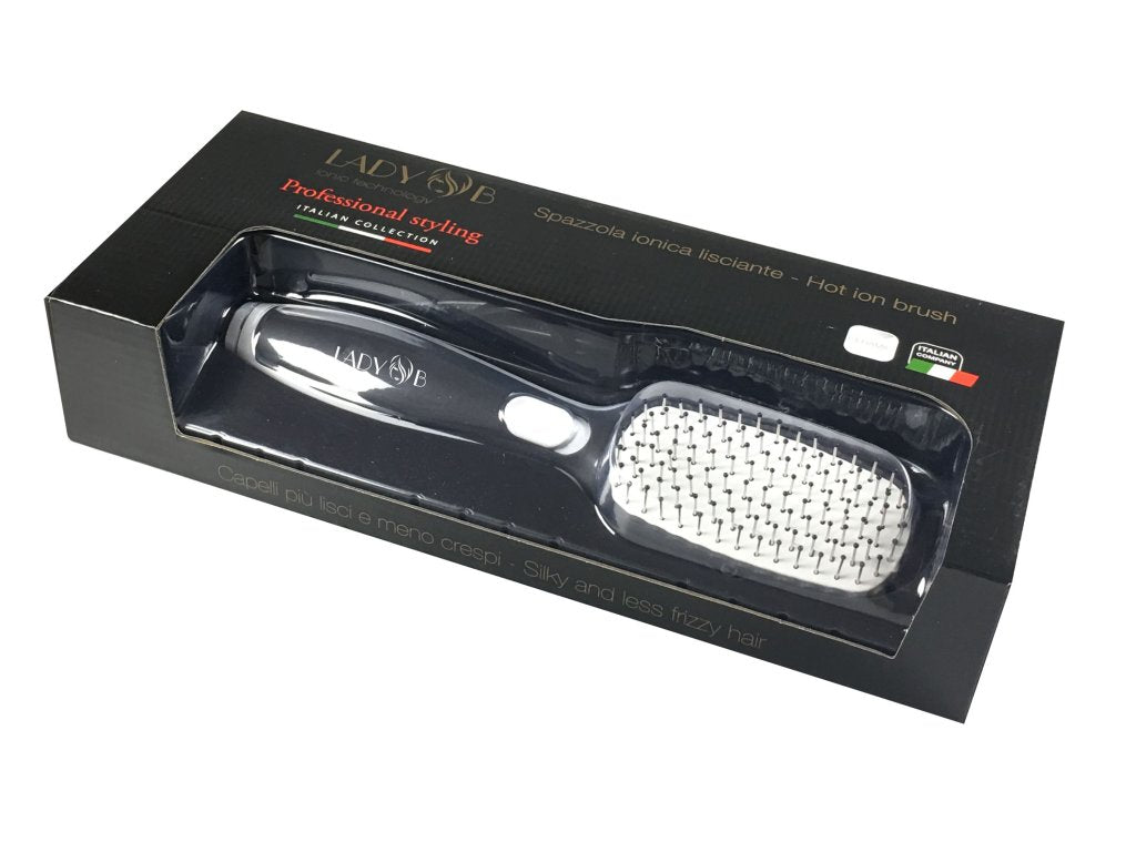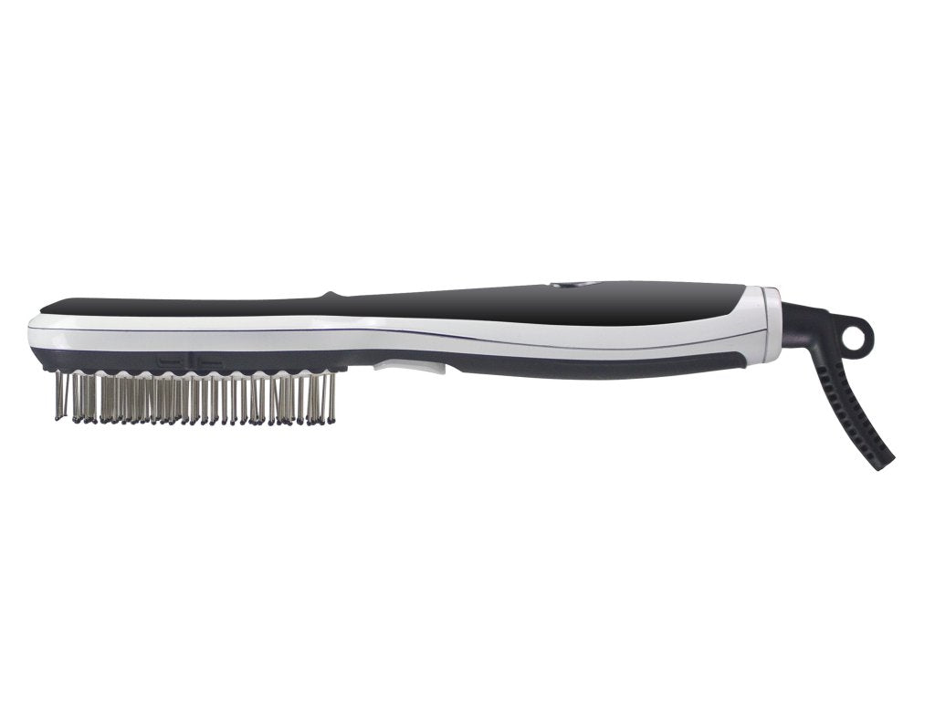 Smoothing brush with ceramic coating with ionic technology. Metal bristles, two different selectable temperatures. Ideal for smoothing hair in just a few strokes, removing frizz. 360° rotating cable.