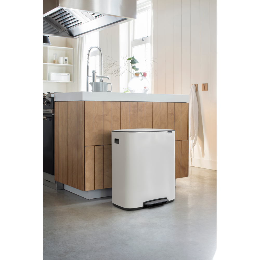 Looking for a waste solution that matches your style? This Brabantia Bo Pedal Bin 60 litre is beautiful on the outside and inside. It is space-saving, has hygienic pedal operation and the lid closes gently when you're done. This space efficient beauty also fits closely to the wall, so your waste management will not get in the way of your lifestyle. Go for Bo!
