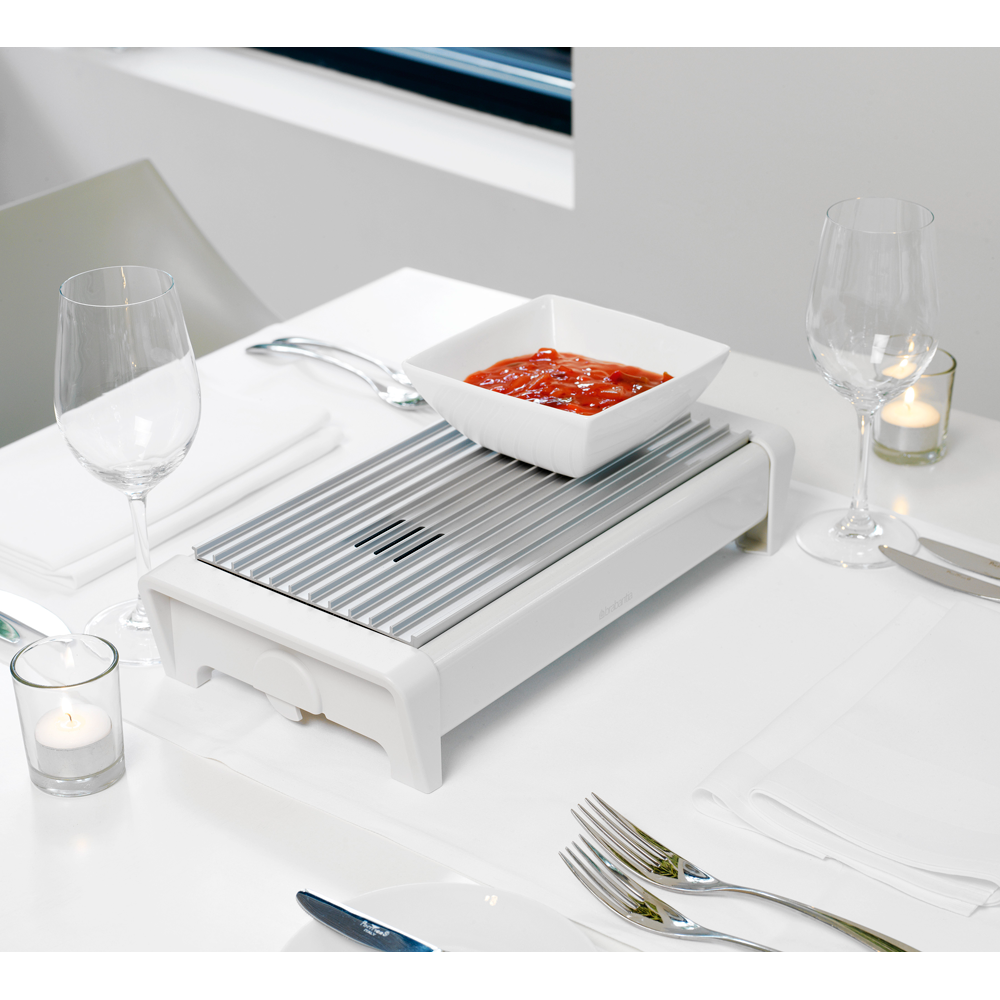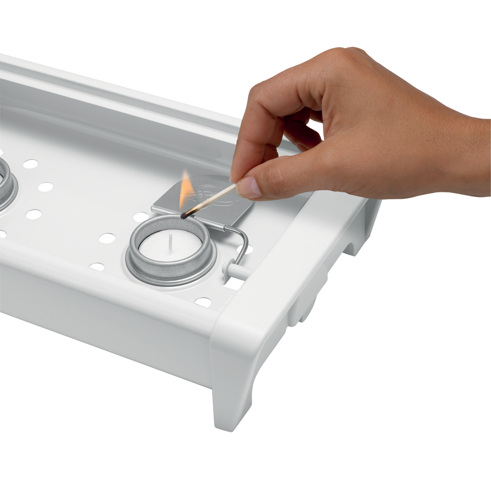 If you want to keep your dishes or meal nice and warm, use our 'Classic' food warmer with two burners. Thanks to the double-walled candle holders your table is protected against scorch marks. The integrated cool grips in the plastic side elements make it easy to pick the food warmer up! Candles are included!