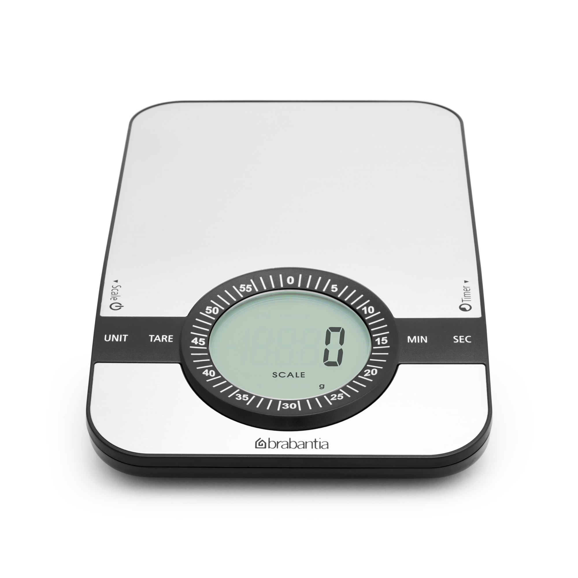 Scaling up your cooking? High time for this round Brabantia Profile Digital Kitchen Scale. A sleek stainless steel piece with an integrated countdown timer with alarm to warn you when your cakes are ready. This allrounder has a backlit display, auto-off and weighs everything from 1 gram to 5 kilos. A real steal!