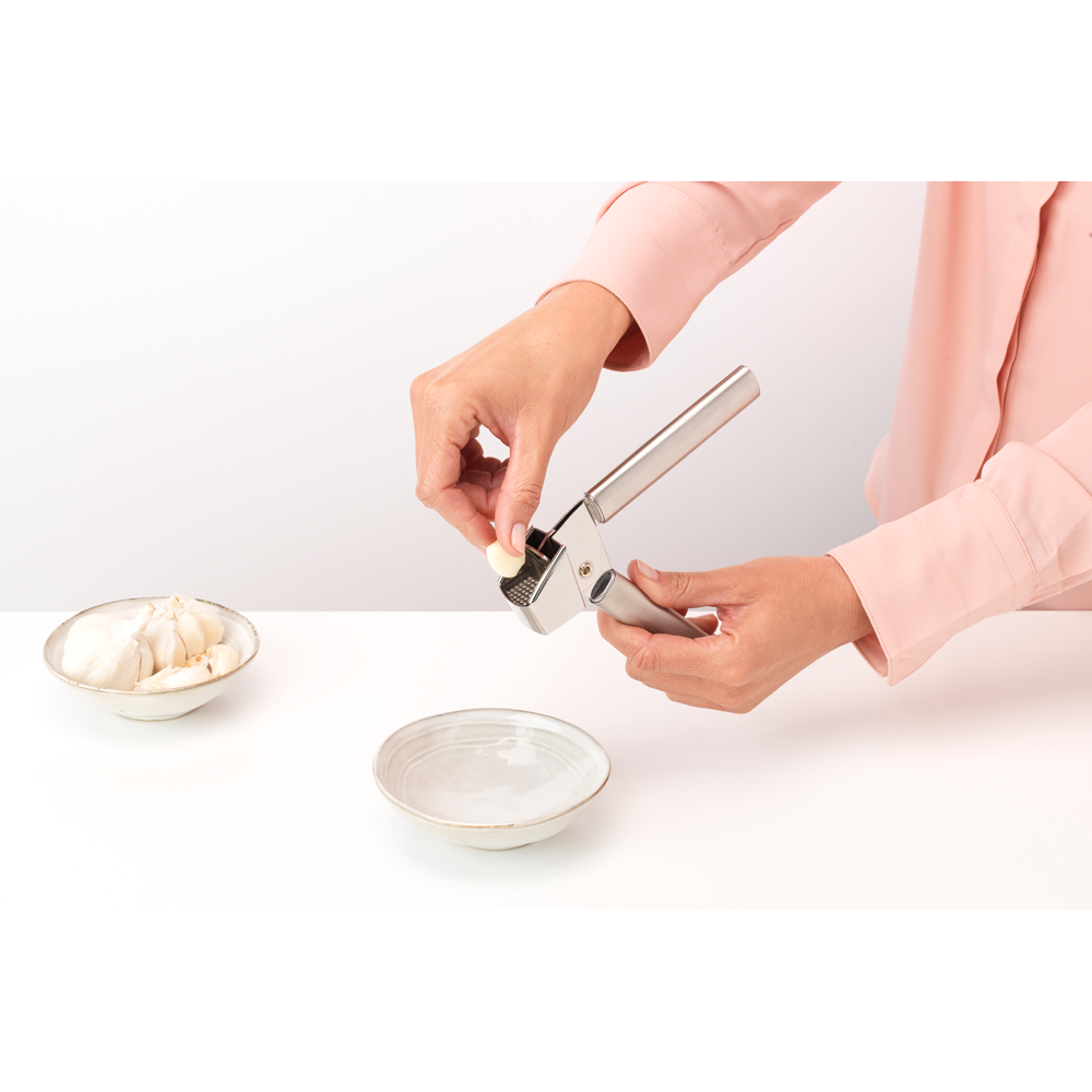 This Brabantia Profile Garlic Press is made of durable stainless steel for years of use, plus ergonomic design for comfortable use. Enjoy the convenience and quality of Brabantia's garlic press for effortless garlic crushing!