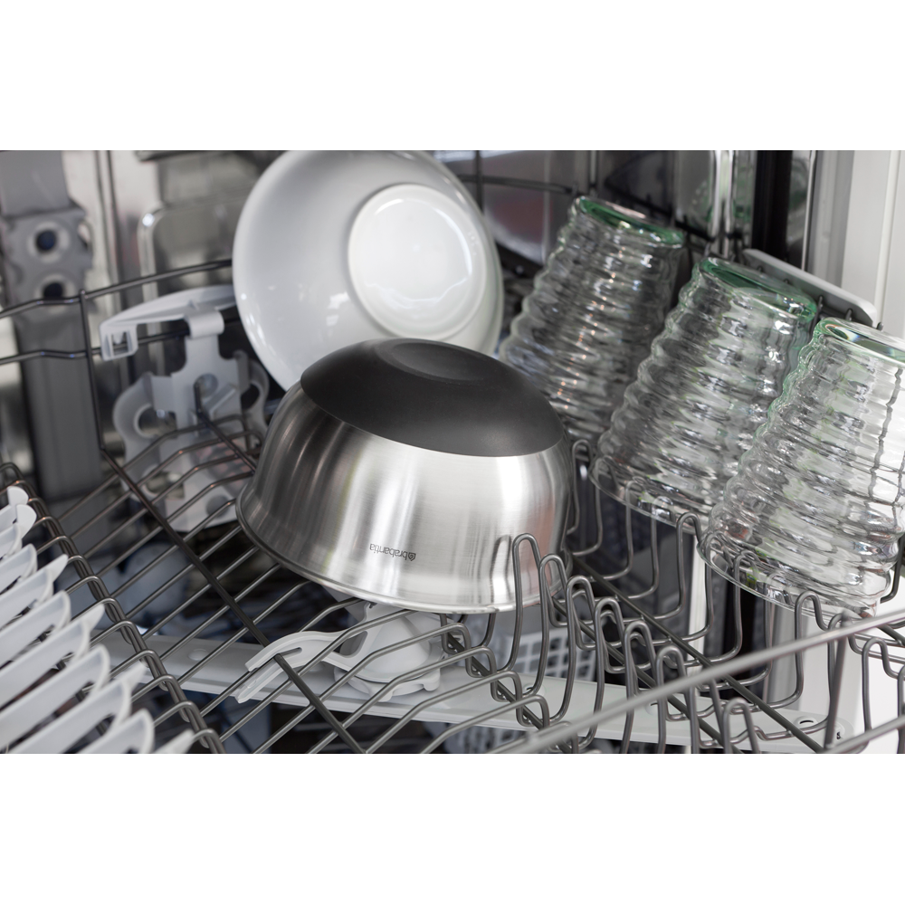 Completely happy when you can stir and mix? Stir up your style with the Brabantia Profile Mixing Bowl made of stainless steel. The measurements on the inside make mixing ingredients easy, the outside stirs up your style. Its gently curved edge is designed to hold the bowl in the optimal stirring position, whilst the silicone base prevents slipping - all heat resistant up to up to 220ºC/448ºF. A real super bowl!