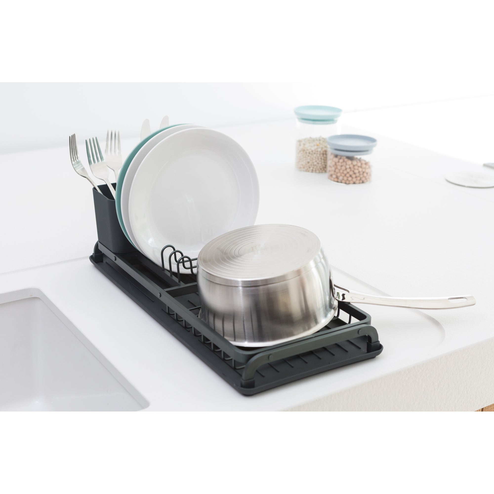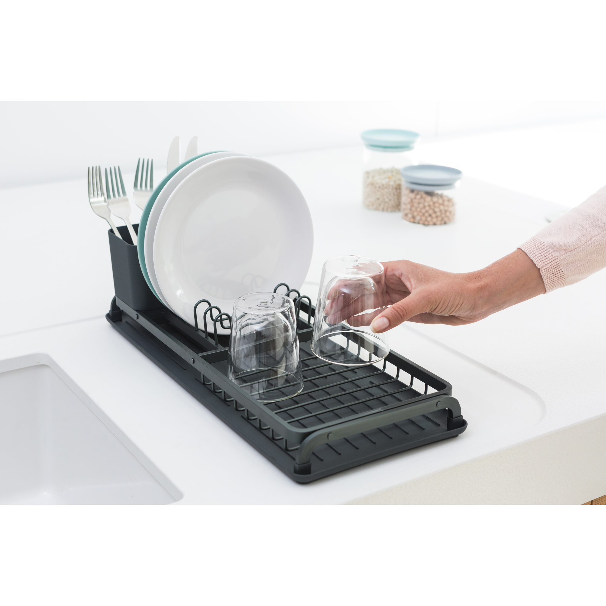 Small kitchen? Don't waste countertop space on drying dishes, use this Brabantia SinkSide Compact Dish Drying Rack. It's designed with limited countertop space in mind, and offers space to fit 5 plates, a removable cutlery basket and a flat section for glasses and more. A great little rack.