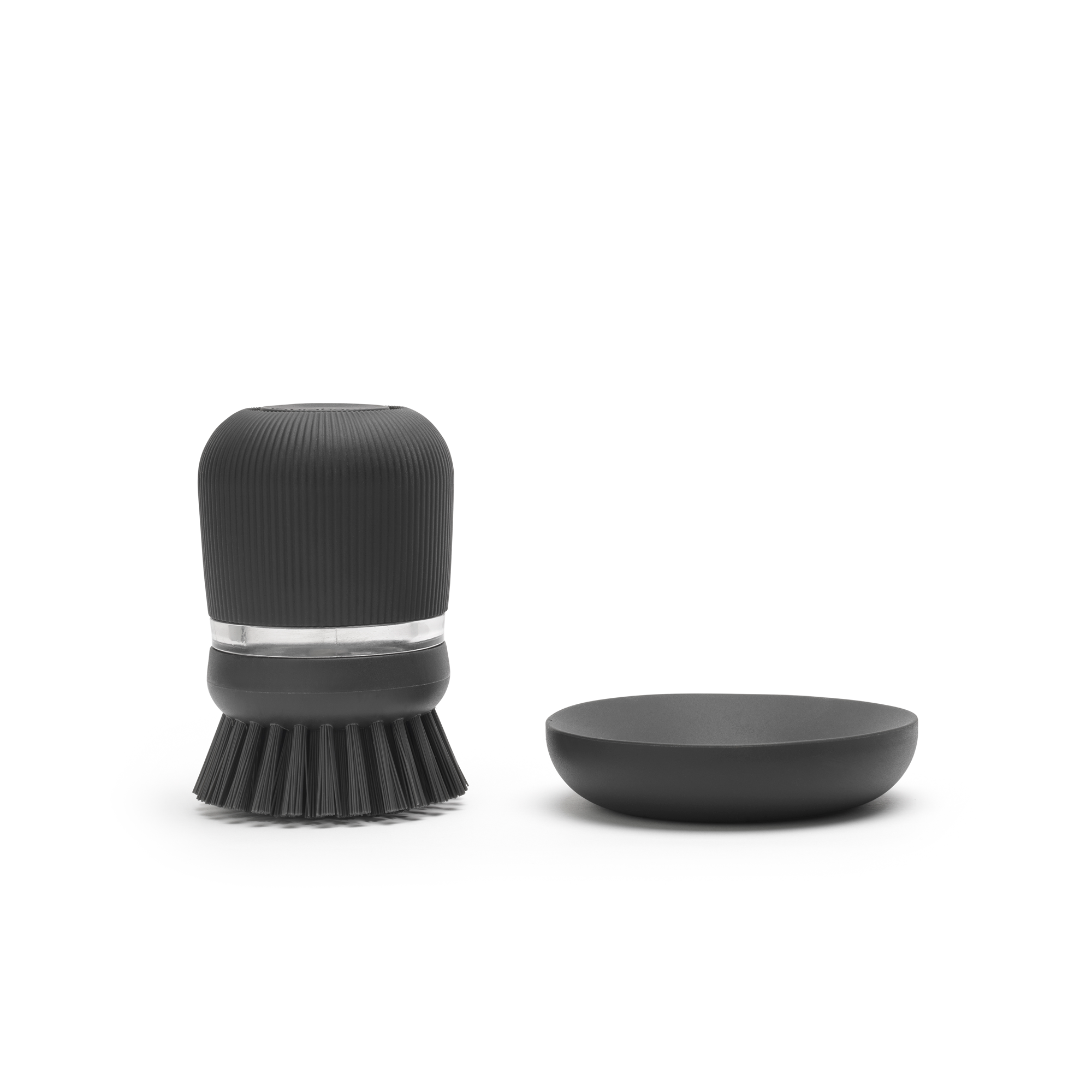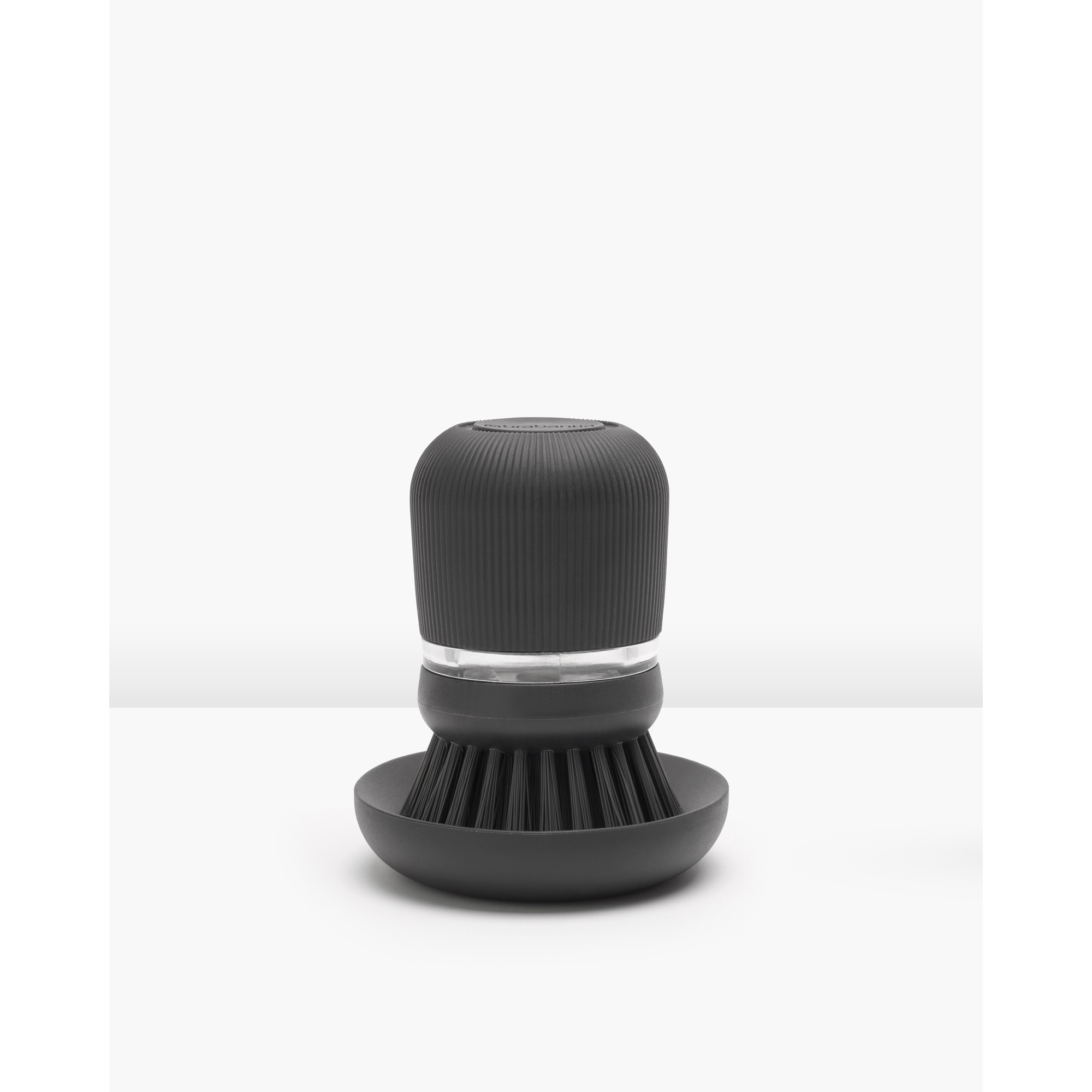 Doing the dishes is easy with this Brabantia SinkSide Soap Dispensing Dish Brush! Push the button to release the amount of dishwashing liquid you need and brush away. The durable polyester bristles are sturdy enough to scrub, but soft enough not to scratch. All done? Keep your brush handy in its smart stand. A sturdy buddy for quick washing-up tasks.
