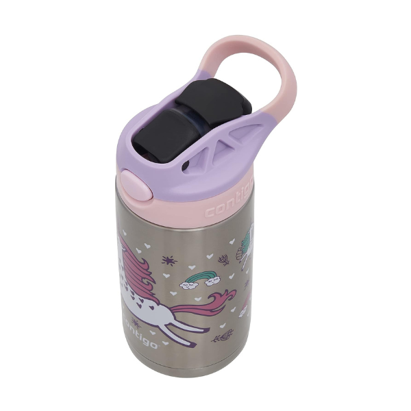 - Ideal for children: To drink, press the button on the front and a mouthpiece pops out of its position; to close, press it back into the original position; a cap protects the mouth piece from dirt