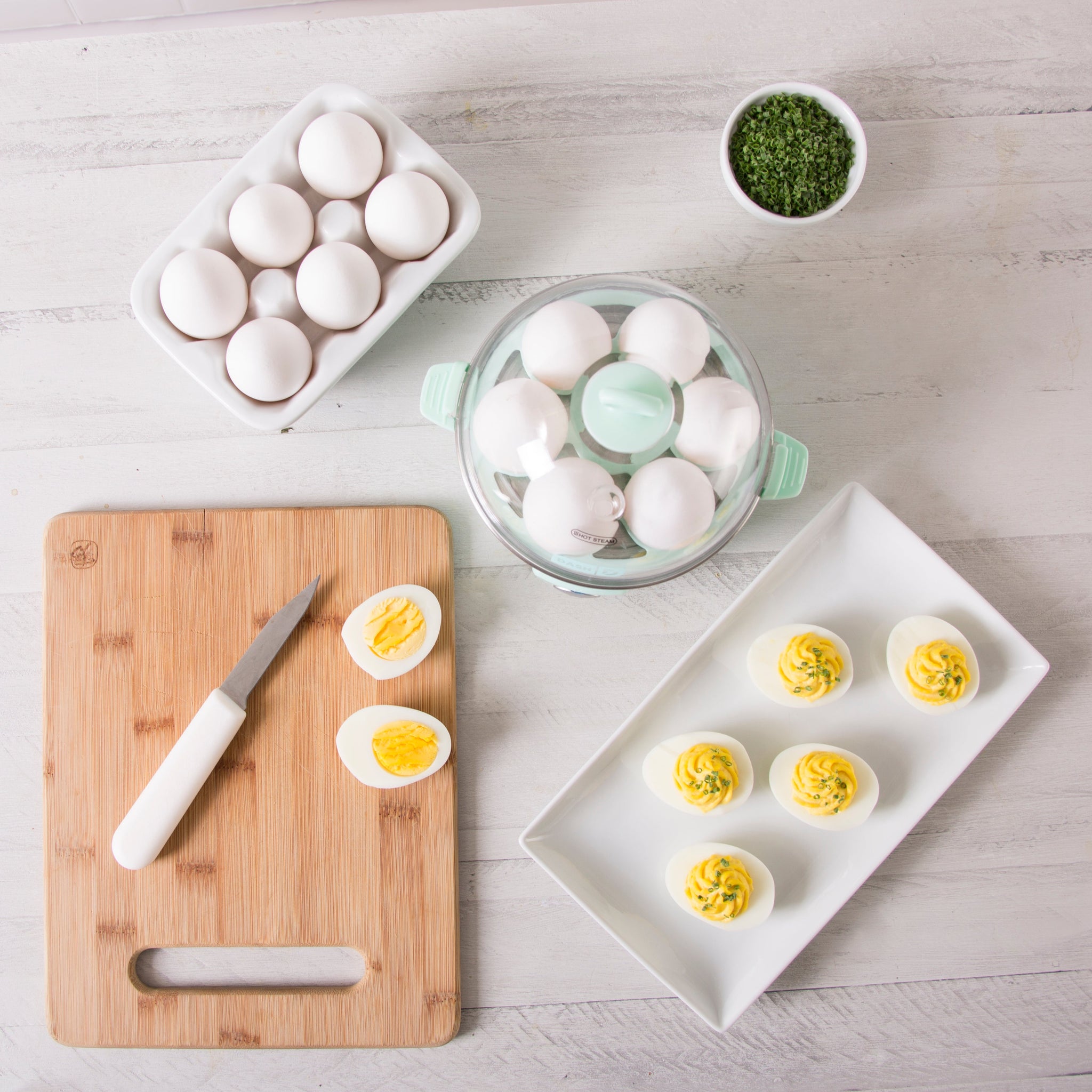 Healthy living starts today with the Dash Rapid Egg Cooker! How do you like your eggs? Imagine being able to prepare a dozen deviled eggs in under 10 minutes! You can cook hard, medium or soft boil 6 eggs at a time, poach, scramble or make fresh customized omelettes. Perfect eggs, your way, every time. Unprocess your food today with the recipe book that is included with purchase, and gain access to our database of thousands of recipes for free! Buzzer alerts when the eggs are finished to prevent overcooking.