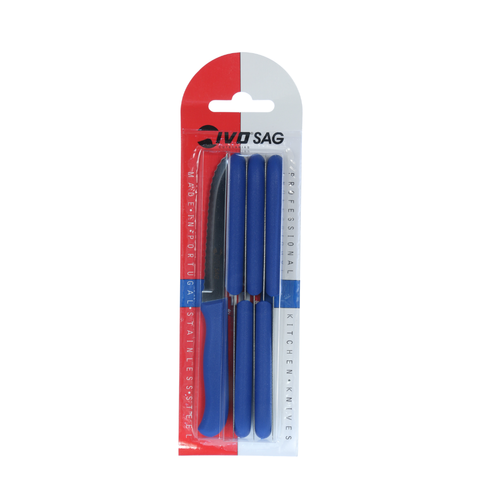 These kitchen knives come with a serrated blade cutting edge for easy slicing of steaks. The blade is of high-grade stainless steel and the ergonomic handle is of resistant plastic, shaped and ground for maximum effect and safe use.