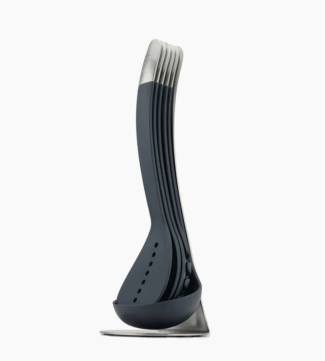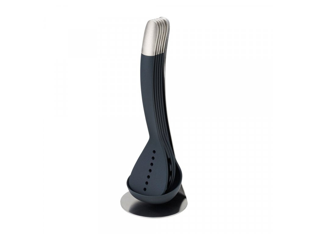 Nest™ Utensils Steel keeps all your cooking essentials in one easy-access place. Its unique design stores five utensils with stainless-steel tabs on a compact stainless-steel storage stand, taking up less room on the worktop and saving time spent looking for the one you need.