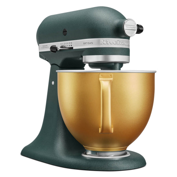 The Artisan tilt-head stand mixer with a limited edition gold colour bowl from KitchenAid is perfect for creating a variety of recipes with endless possibilities. The mixer has several essential features and functions including a multipurpose attachment hub, direct-drive motor, robust metal body with a stylish Pebble Palm finish.