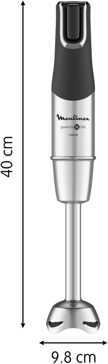 The Moulinex Infinity Force Hand Blender combines power and durability for efficient blending. Equipped with exclusive Powelix Life blades, it offers twice the lifespan and delivers results 30% faster. Its robust 1200W motor ensures rapid, high-performance blending, while the ergonomic trigger-style speed control provides precise handling. The anti-splash foot minimizes mess for a cleaner workspace, and dishwasher-safe detachable parts simplify cleaning. Enhance your culinary skills with the included 5-function food processor and a range of versatile accessories, expanding your kitchen capabilities.