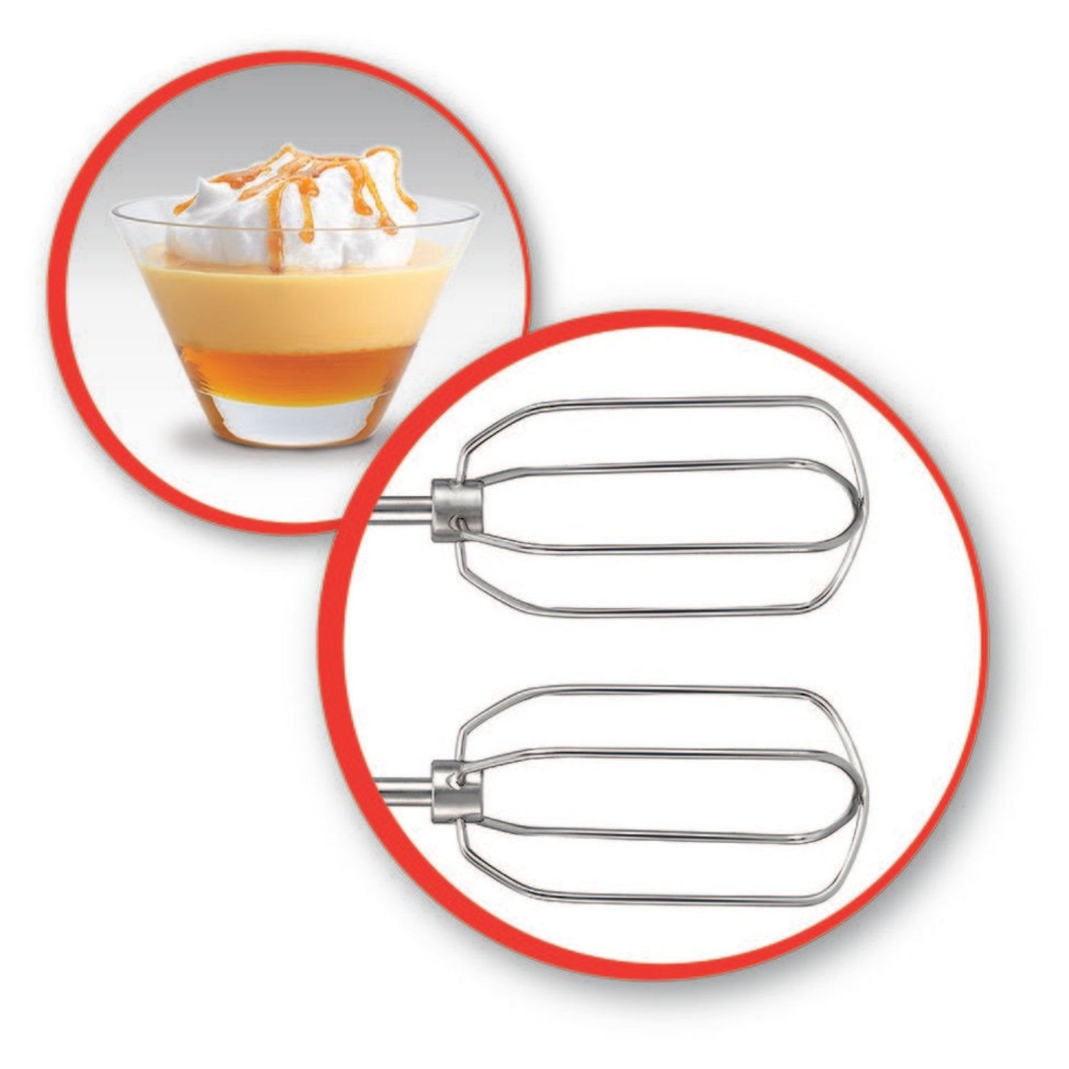 - Great whisking results: Set of stainless steel beaters to easily prepare batters, cakes mixes, whipped egg whites and cream.