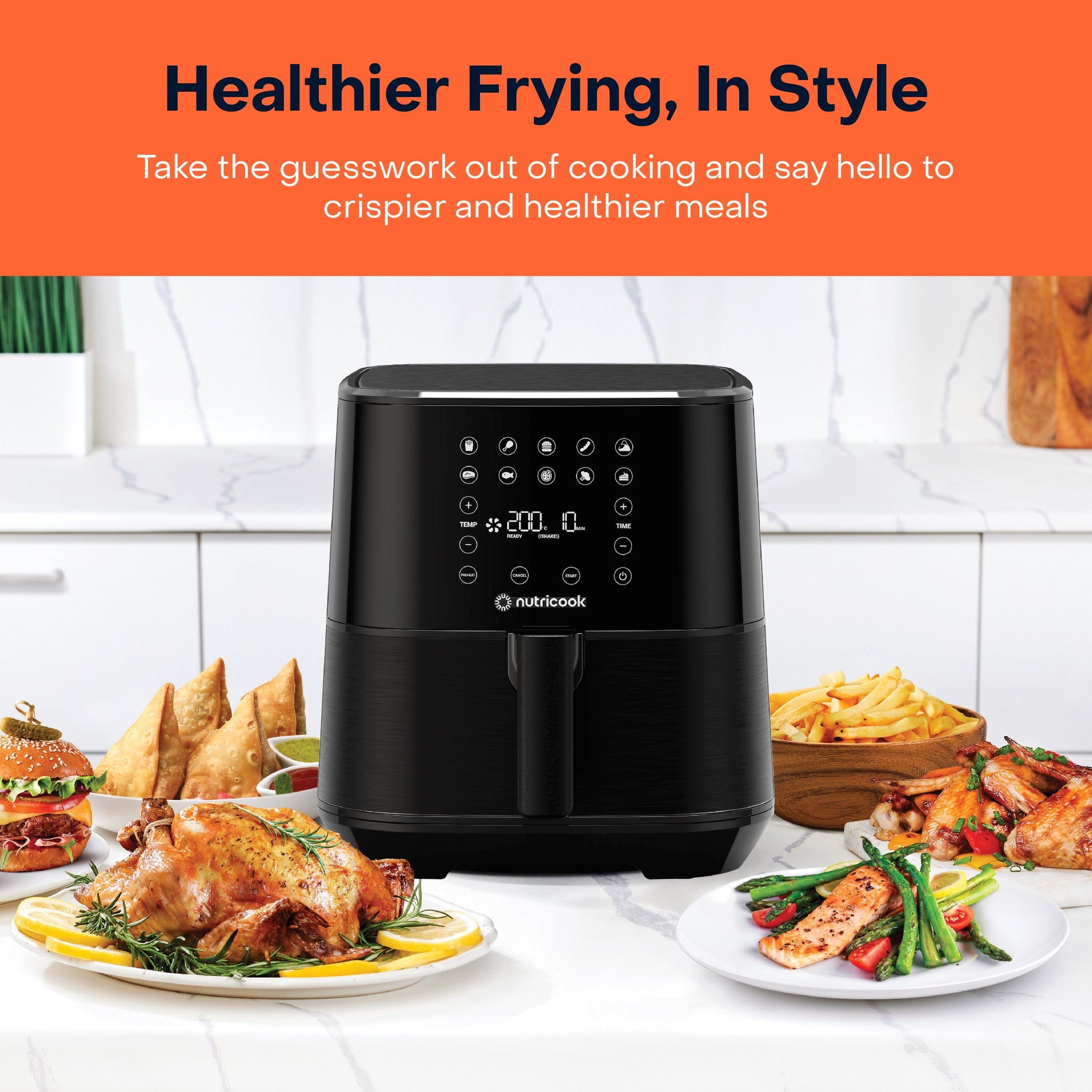 With 85% less fat than a traditional deep fryer, you can make all your favorite foods guilt-free. Our SmartTemp Technology automatically adjusts the temperature while cooking to give you the best of both worlds - perfectly cooked on the inside and crispy on the outside. Equipped with other useful features designed for your ease – Preheat, Celsius to Fahrenheit conversion, Auto Shut Off, and a Shake Reminder function telling you when to shake so all of your food gets fried evenly. It comes with 10 one-touch presets allowing you to cook everything from salmon to steak perfectly, every single time.