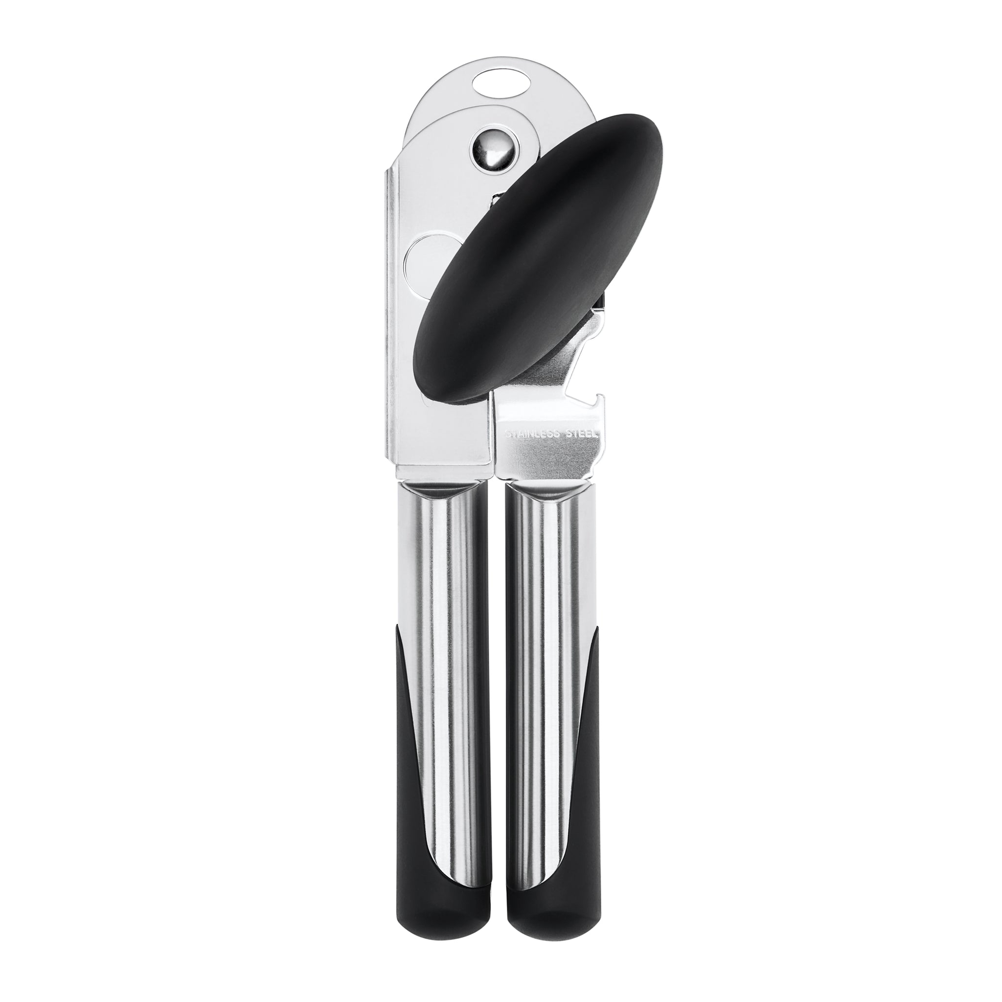 Introducing the OXO Good Grips Can Opener, made with sharp, stainless-steel blades for easy and efficient use. With an oversized knob, even those with limited hand strength can open cans with ease. The large handles feature cushioned touch points for comfortable and pressure-absorbing use. And with a built-in bottle opener, it's the versatile kitchen tool every home cook needs. Suitable for left- and right-handed use.