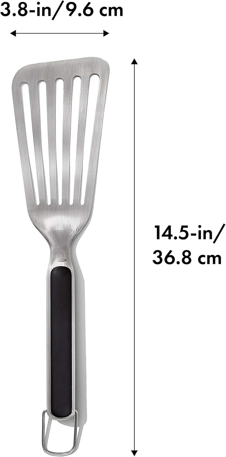 The OXO Good Grips Grilling Precision Turner is a must-have tool for any grilling enthusiast. Its durable, stainless steel design is perfect for flipping burgers and its thin, beveled head effortlessly slides under any food. With a non-slip grip and convenient hanging ring, grilling has never been easier.