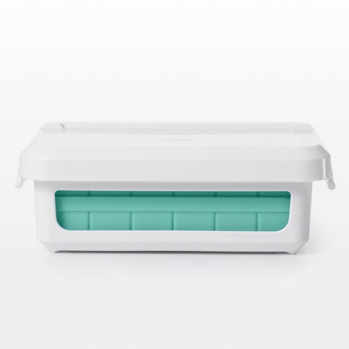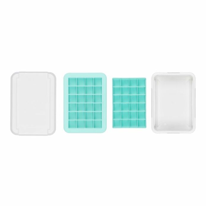 Expertly make 48 small (7/8" square) cubes with two trays using the OXO Good Grips Ice Cube Tray. Enjoy easy removal with flexible silicone and support during filling, moving, and storage with the frame. The cover keeps out odors and allows for stacking multiple trays.