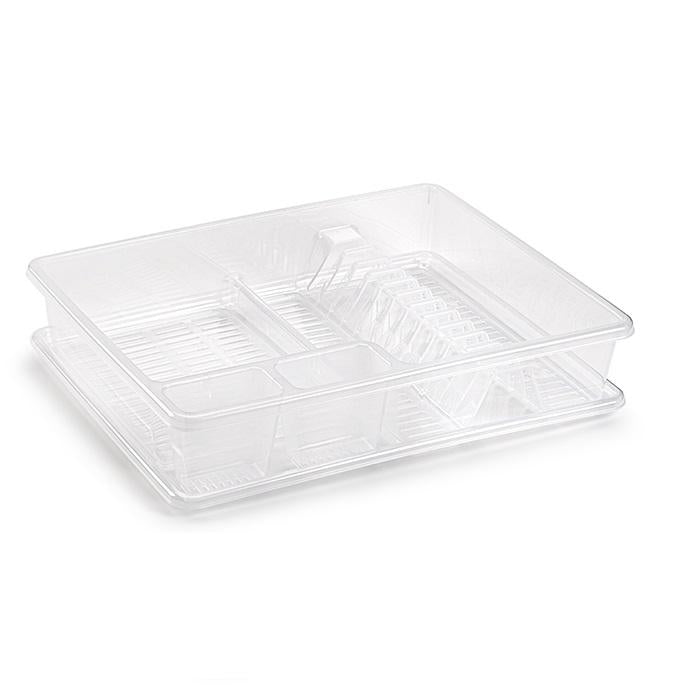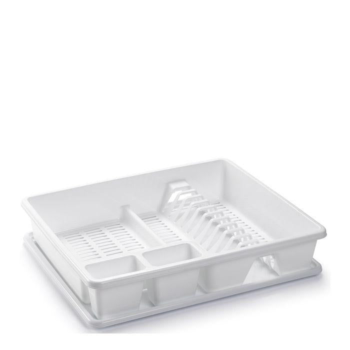The large rectangular dish drainer has space for drying dishes, cutlery, glasses and other household items. This dish drying rack comes with a tray and a cutlery-drying cup.
