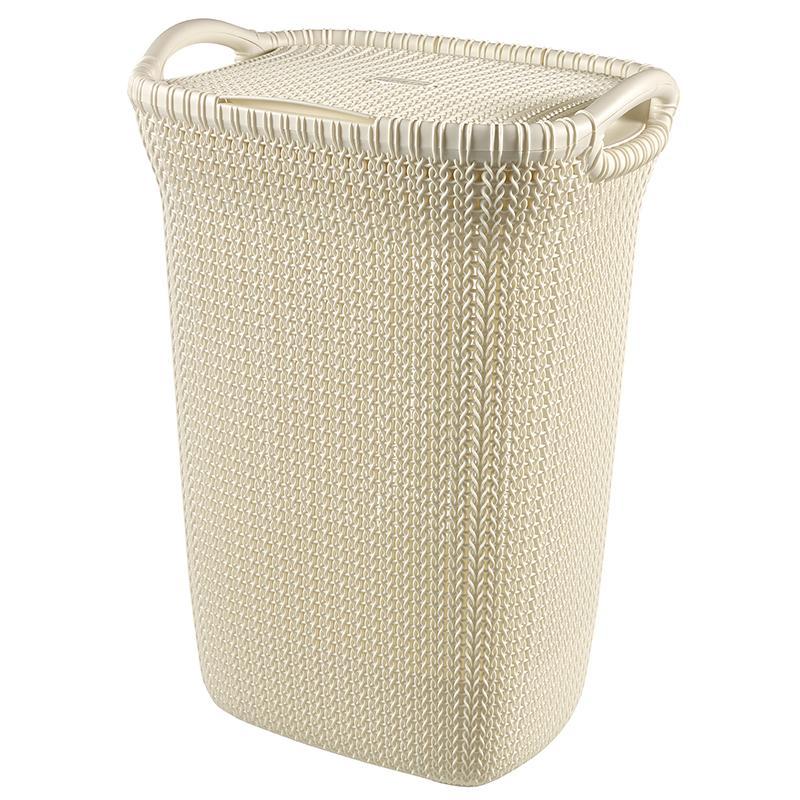 A elegant storage solution for your bathroom and utility area.Elegant Knit design by Curver with comfortable handles and 270 degree lid opening for easy access.