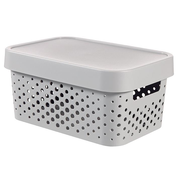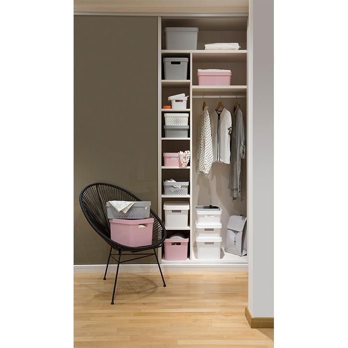 The Infinity storage boxes by Curver are modern storage boxes that fit into a modern working environment. They are characterized by clear lines and trendy color. All Infinity boxes comes with practical handles. The small infinity boxes can be used as a divider traying larger boxes.The infinity boxes are securely stacked with the lid. Without a lid, the infinity boxes are stackable in a space-saving manner.