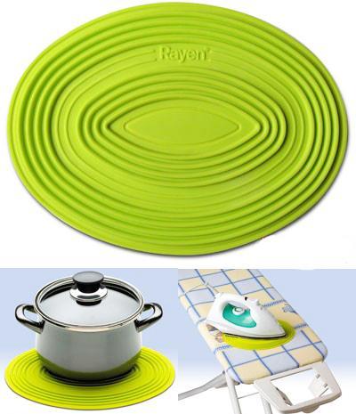 This silicone pad protects from sources of heat, very useful in the kitchen as a serving pad (under hot pots and pans) or as a handy iron pad.