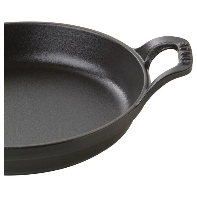 For centuries, cooks have taken advantage of the natural heat retention and redistribution properties of cast iron. Staub builds on this tradition with our enameled cast iron cookware. Black matte enamel inside and cooking surface creates a culinary advantage for better browning, braising, and roasting. Colorful enamel outside adds flare to your kitchen and table. Safe for use on all types of heat sources, including gas, electric, and induction, and oven safe up to 500°F. Chip resistant and dishwasher safe. Made in France.