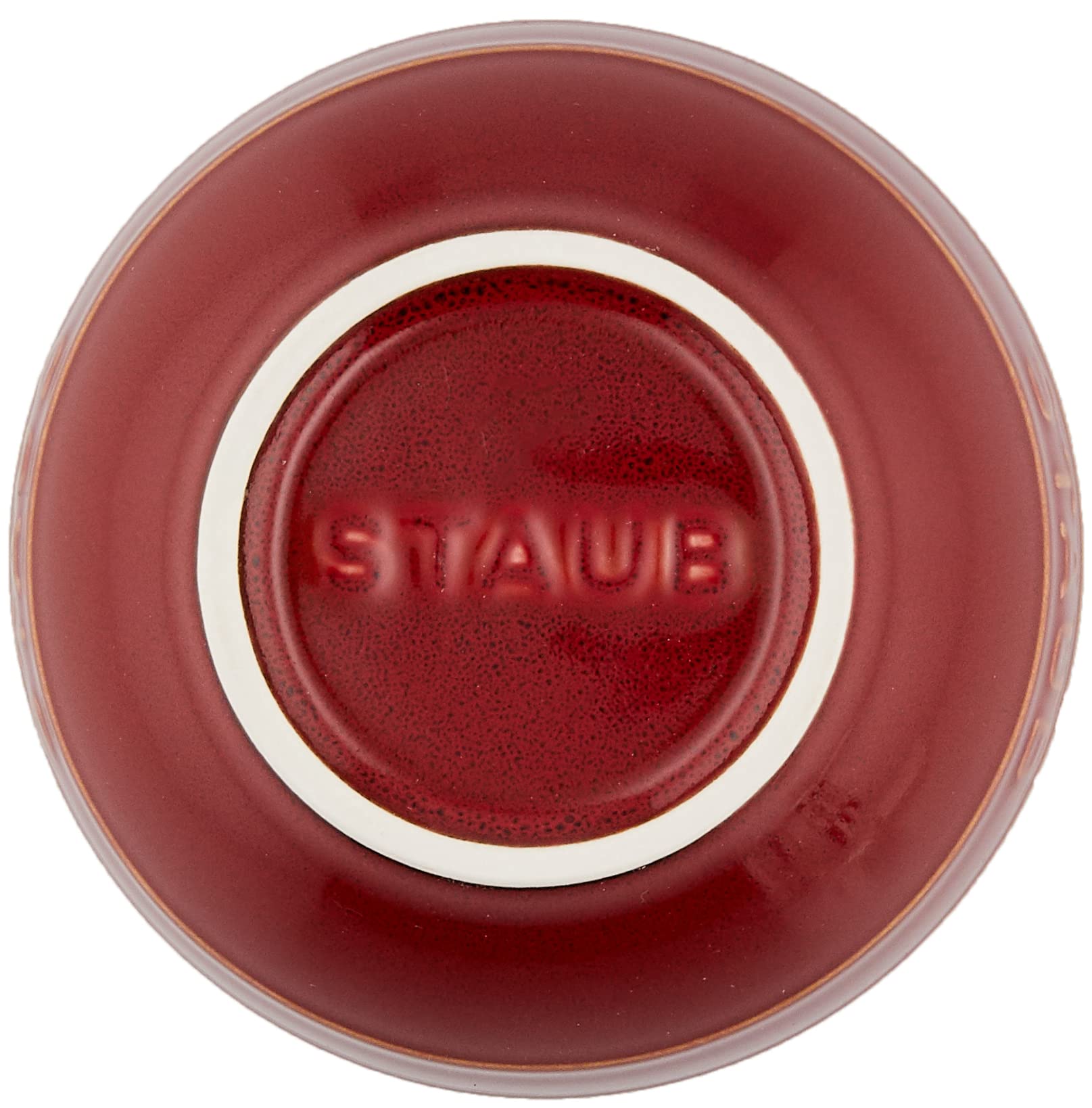 The glass porcelain finish combines with the Staub cast iron to blend seamlessly into your table.