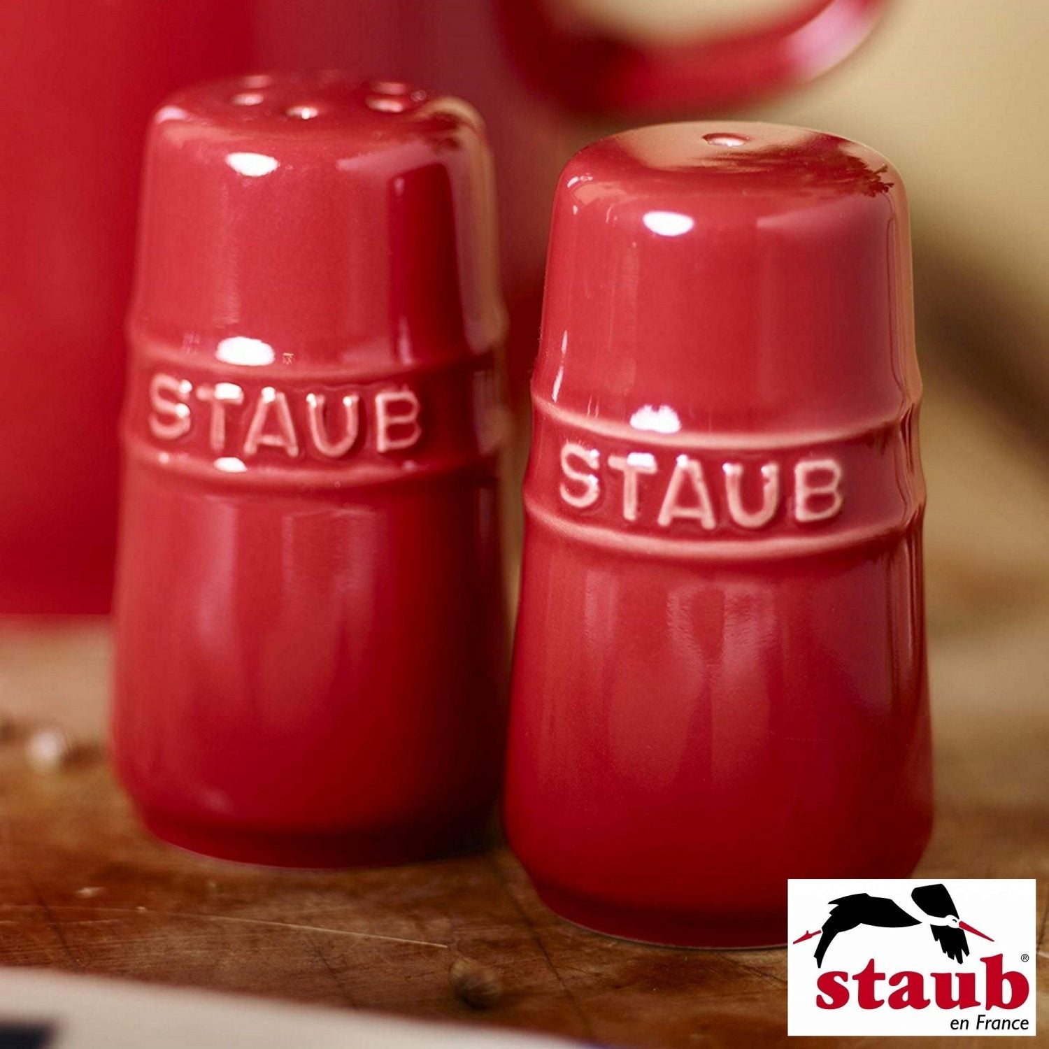 Sprinkle your food with style using the 7cm Staub Ceramic Salt & Pepper Shaker Set in Cherry Red. These shakers boast a sleek design that adds a touch of elegance to your table, and their high quality ensures long-lasting use. With an easy-to-clean structure, these shakers are a convenient addition to any kitchen. Enhance your dining experience with the trusted STAUB brand.