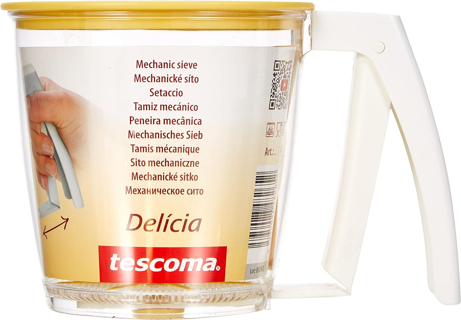 - It is provided with a measuring scale for even more accurate dosing, and two caps, the lower and upper one, that allow for storing unused batter for further use.
