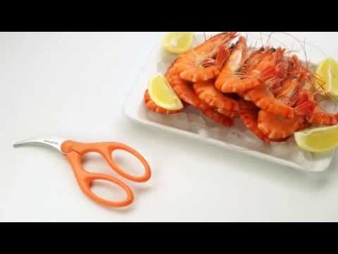 Excellent for easily opening the shells of small and large shrimp, tiger shrimp, prawn, etc. With a special serrated blade; the scissors do not slip on the smooth shell. Made of high-grade stainless steel and resistant plastic.
