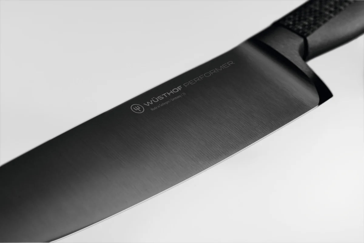Master the art of precision cutting with the Wüsthof Performer Chef's Knife, engineered for those who demand excellence in the kitchen. This 20cm blade delivers exceptional versatility—from breaking down large ingredients to executing delicate herb work with equal finesse. The innovative Diamond-Like Carbon finish provides superior durability, heat resistance, and frictionless performance that withstands rigorous daily use. Complemented by the ergonomic Hexagon-Power-Grip handle and full bolster construction, this knife offers the balance and control that distinguish professional-grade cutlery. Whether you're a dedicated home cook or seasoned chef, the Performer sets the standard for precision and reliability in every slice.